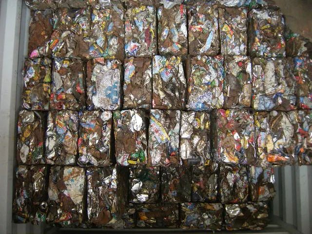 All the consumer cans or packaging materials with ferrous contents are segregated by various sorting processes and than baled or compressed in to various size of bundles making is suitable for charging in furnace. ISRI 213 steel can bundles : Steel can scrap compressed to charging box size and weighing not less than 75 pounds per cubic foot. Cans may be baled without removal of paper labels, but free of other non metallic impurities. May include up to 5 gallon tin coated containers.